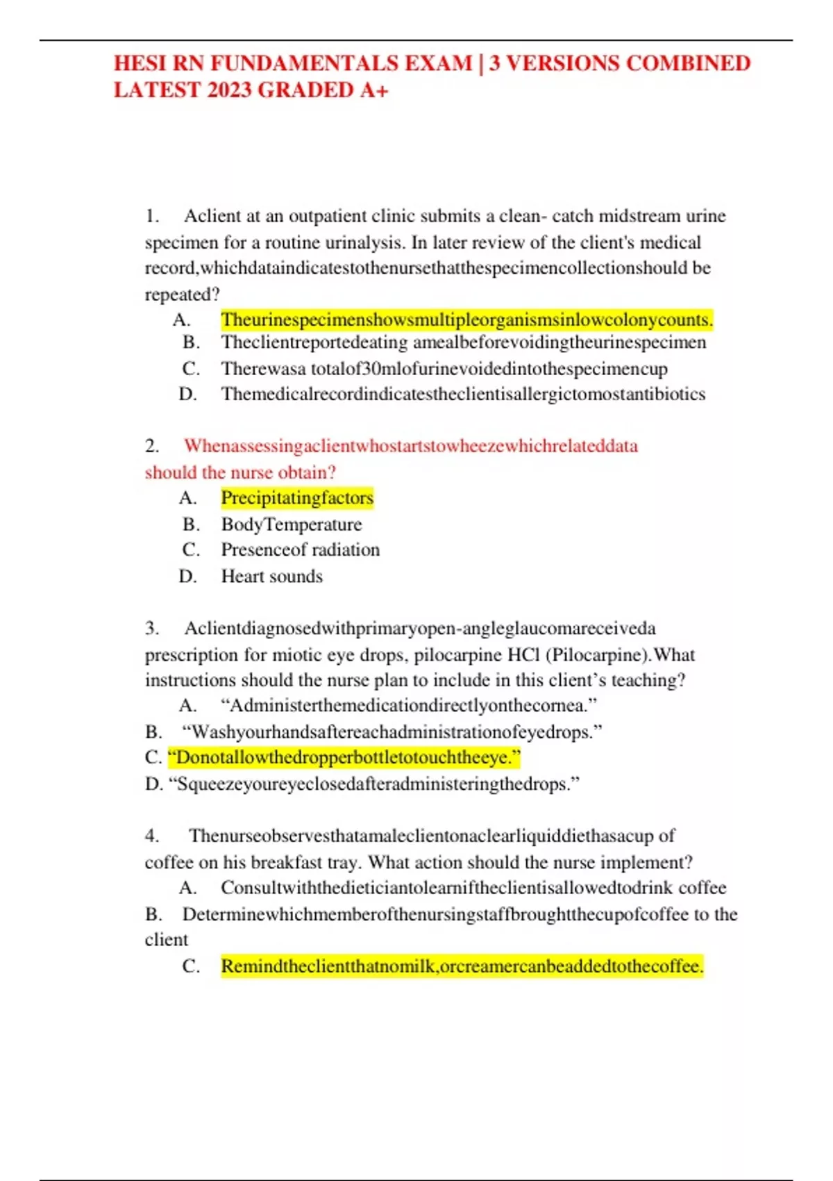 HESI RN FUNDAMENTALS EXAM | 3 VERSIONS COMBINED
