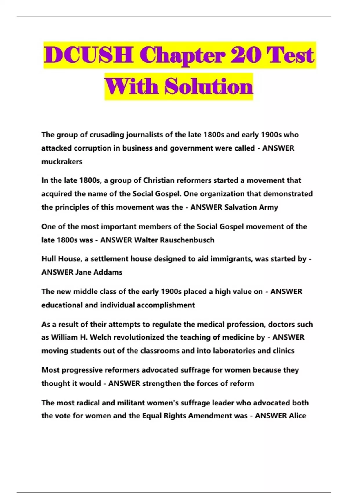 DCUSH Chapter 20 Test With Solution...