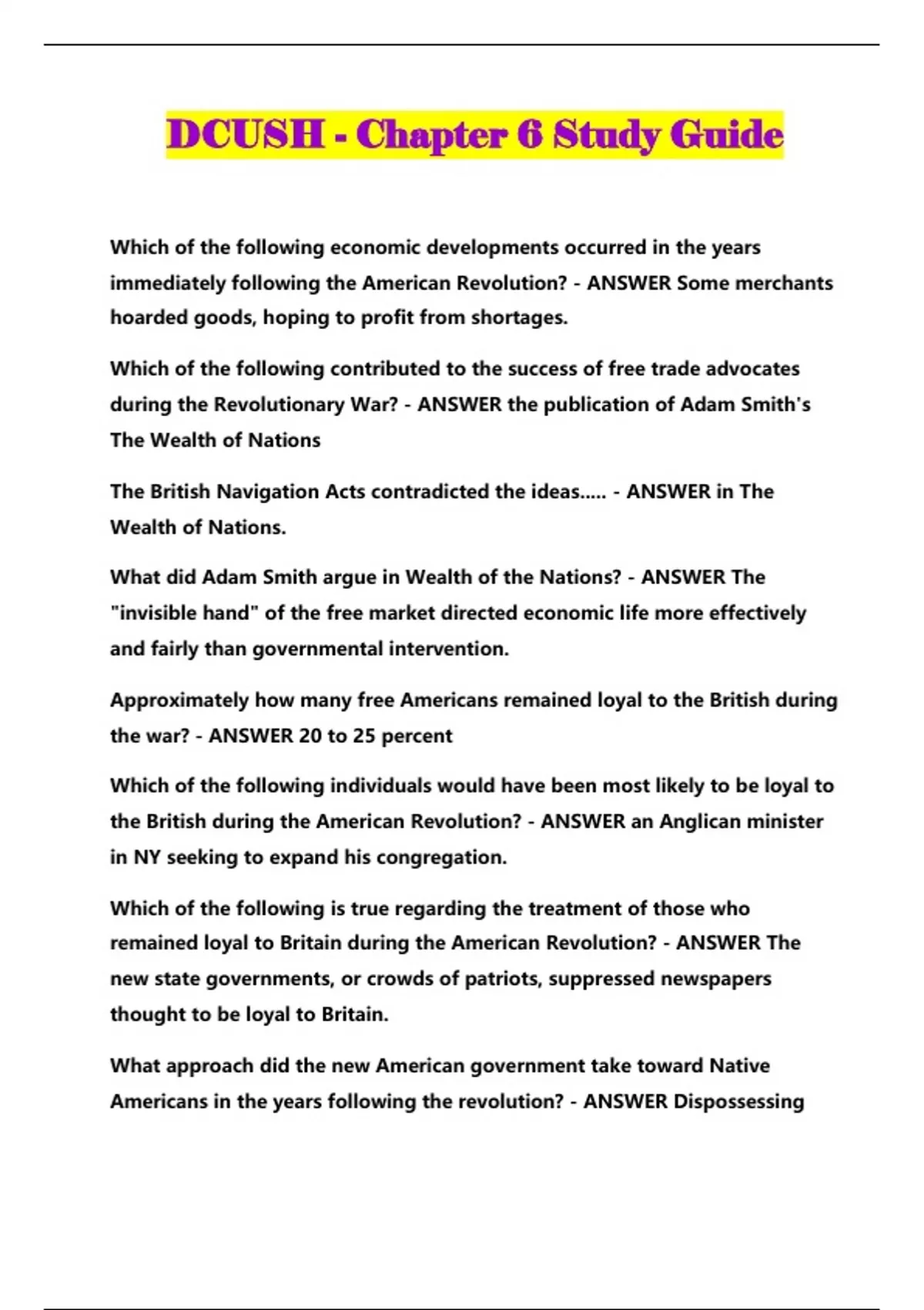 dcush chapter 6 study guide