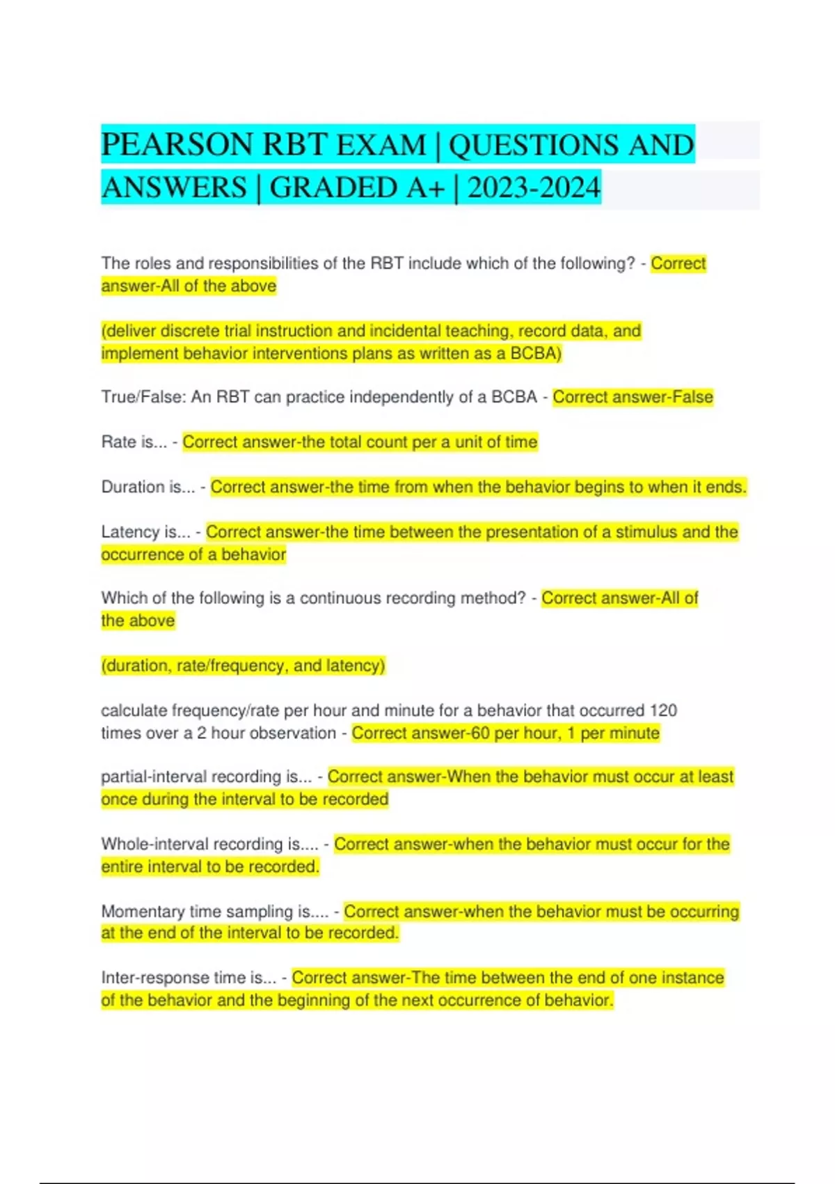 RBT EXAM | QUESTIONS AND ANSWERS | GRADED A+ |