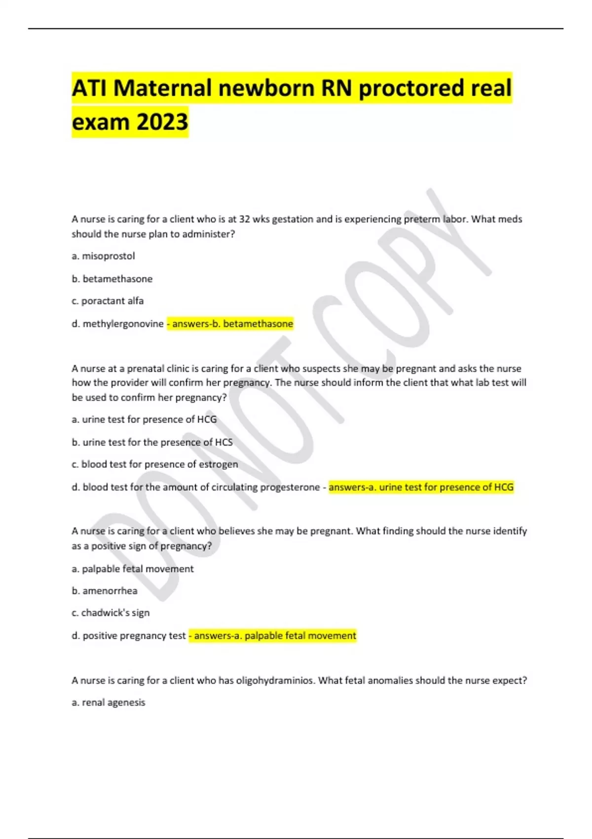 ATI Maternal newborn RN proctored real exam 2023 ATI Maternal newborn RN proctored real exam 2023 ATI Maternal newborn RN proctored real exam 2023