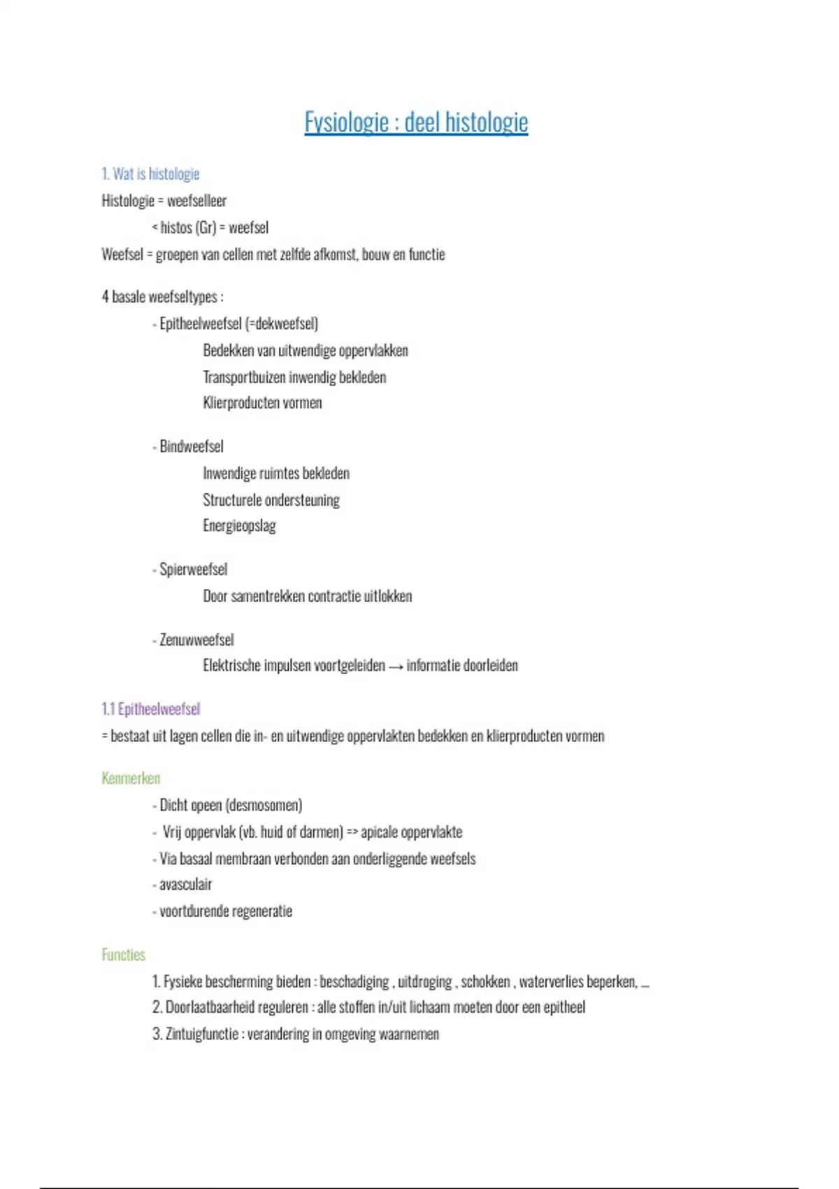 Fysiologie : deel histologie