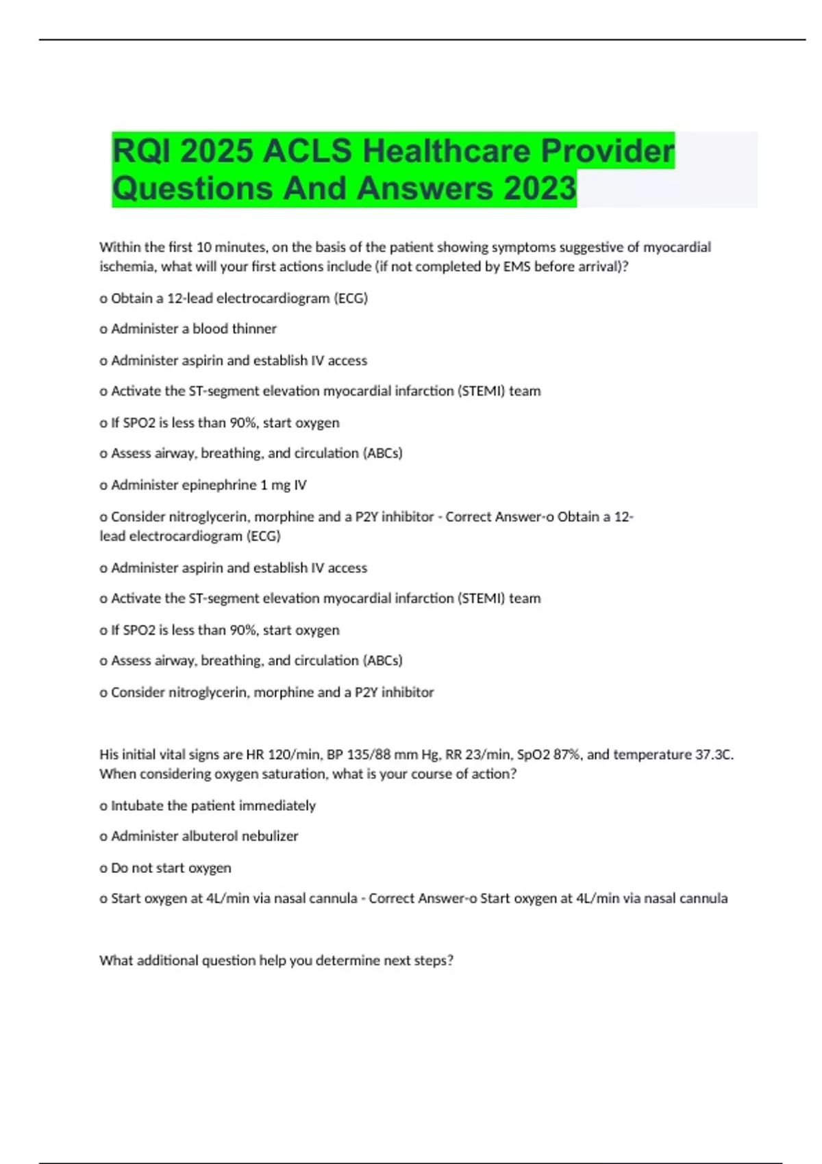 o Start oxygen at 4L/min via nasal cannula - Correct Answer-o Start oxygen at 4L/min via nasal cannula