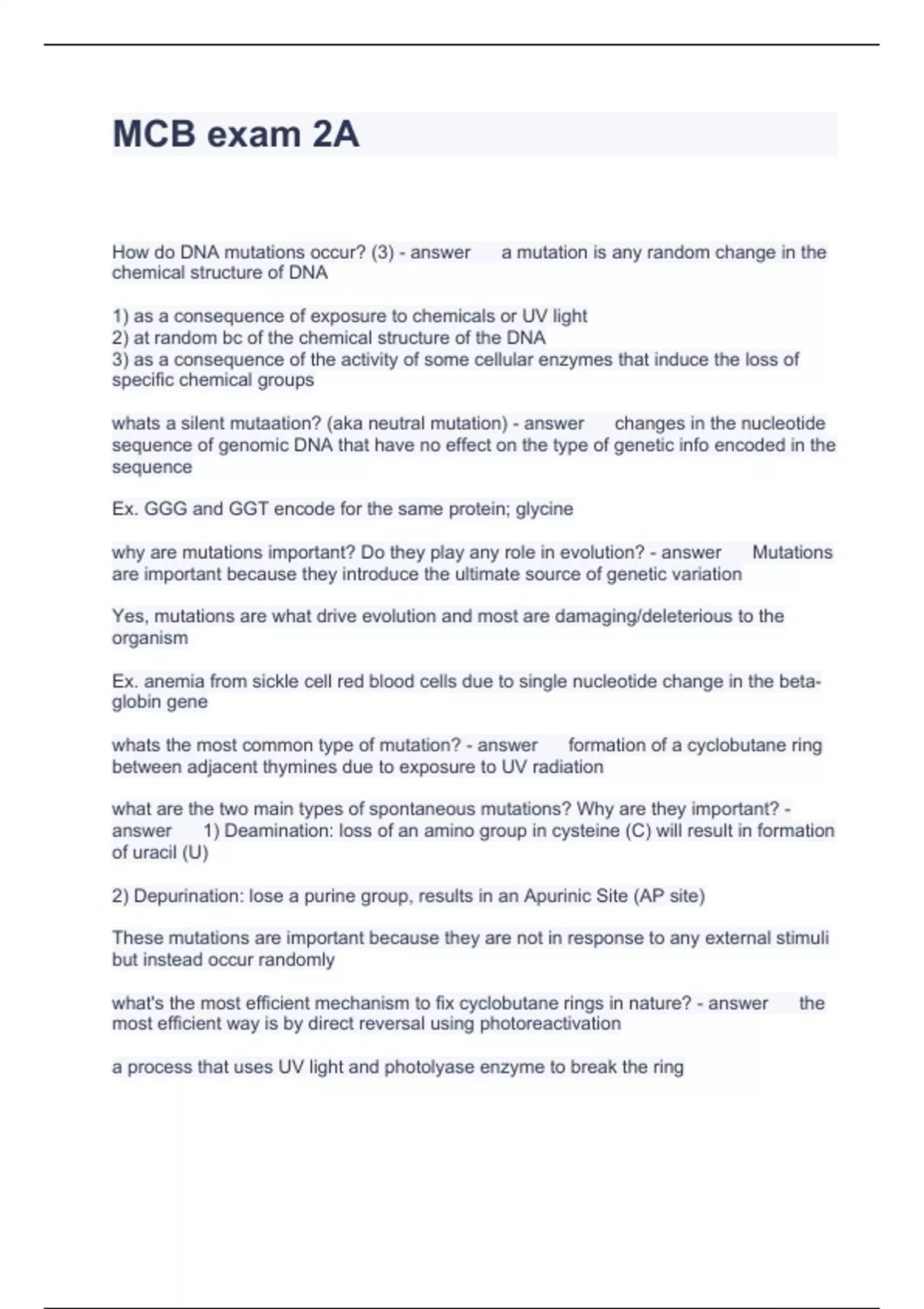 MCB exam 2A Questions with solutions 2023
