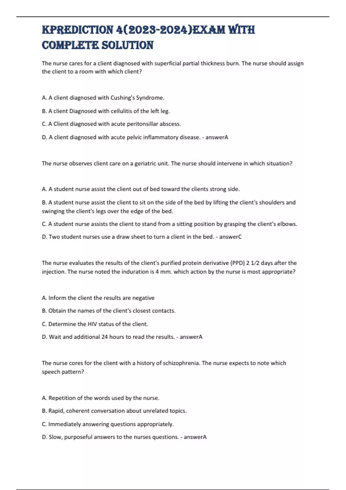 Kprediction 4()Exam with complete solution