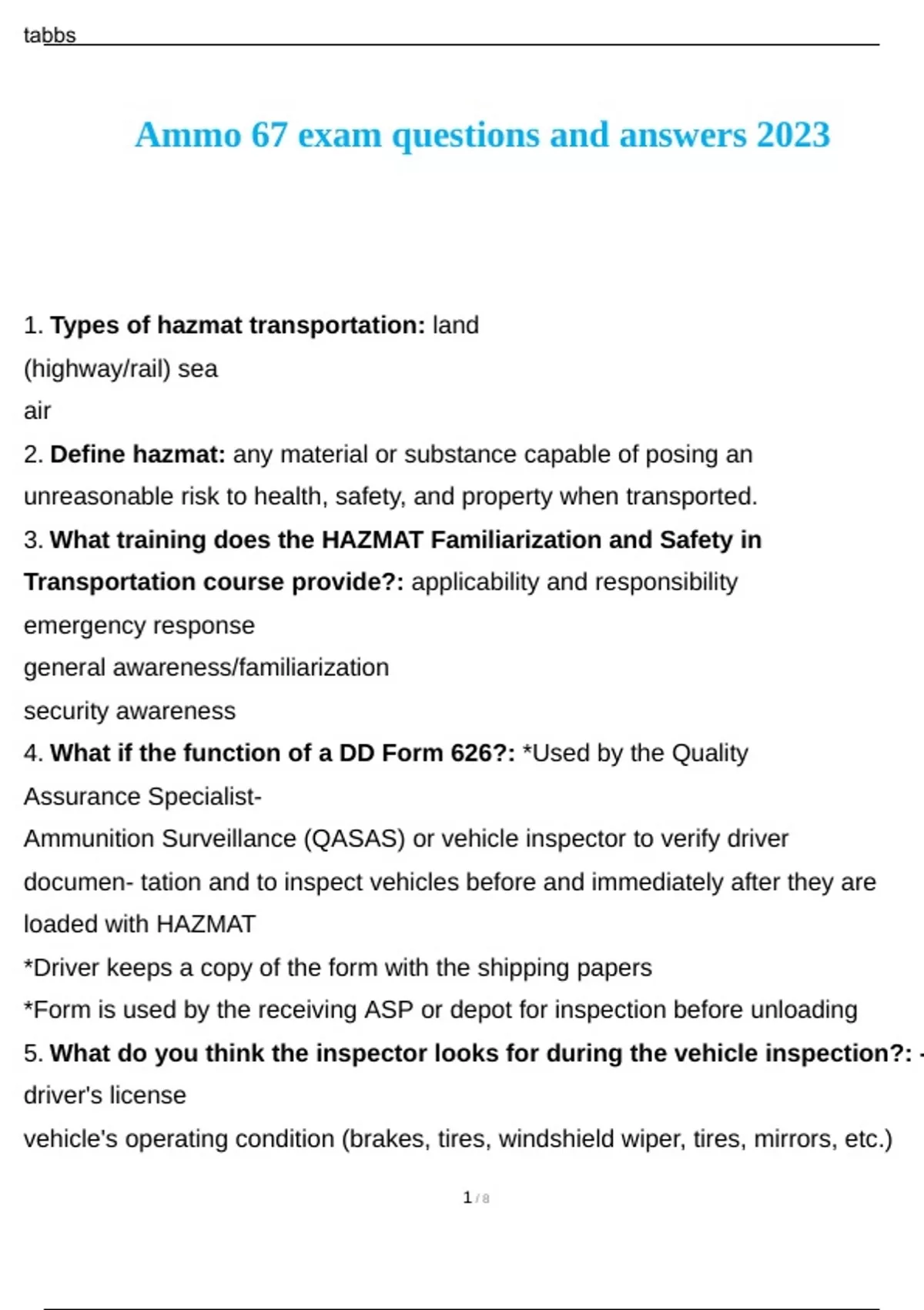 Ammunition Surveillance (QASAS) or vehicle inspector to verify driver