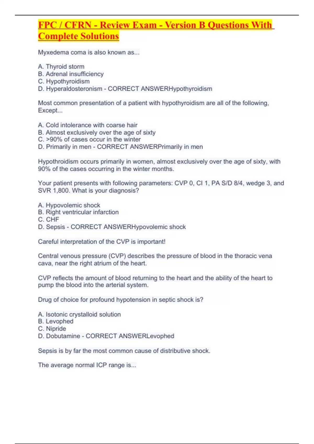 FPC / CFRN - Review Exam - Version B Questions With Complete Solutions