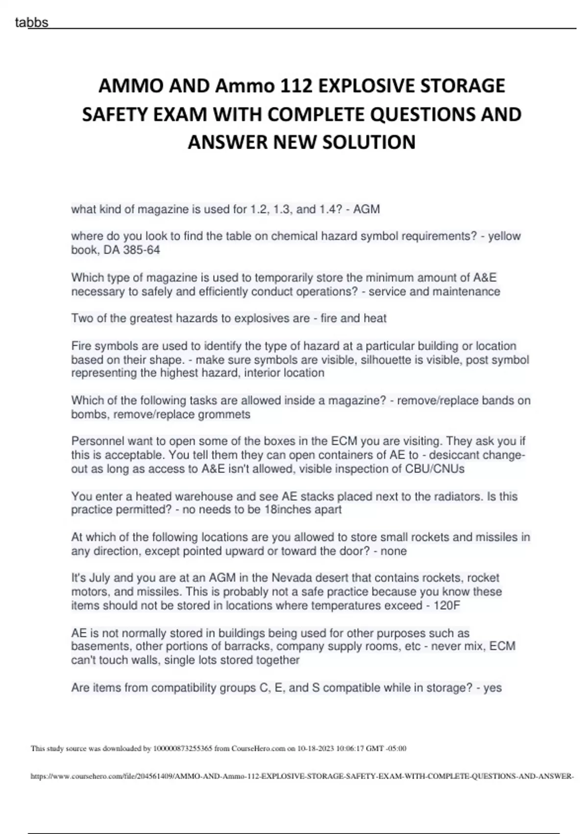 https://www.coursehero.com/file/204561409/AMMO-AND-Ammo-112-EXPLOSIVE-STORAGE-SAFETY-EXAM-WITH-COMPLETE-QUESTIONS-AND-ANSWER-