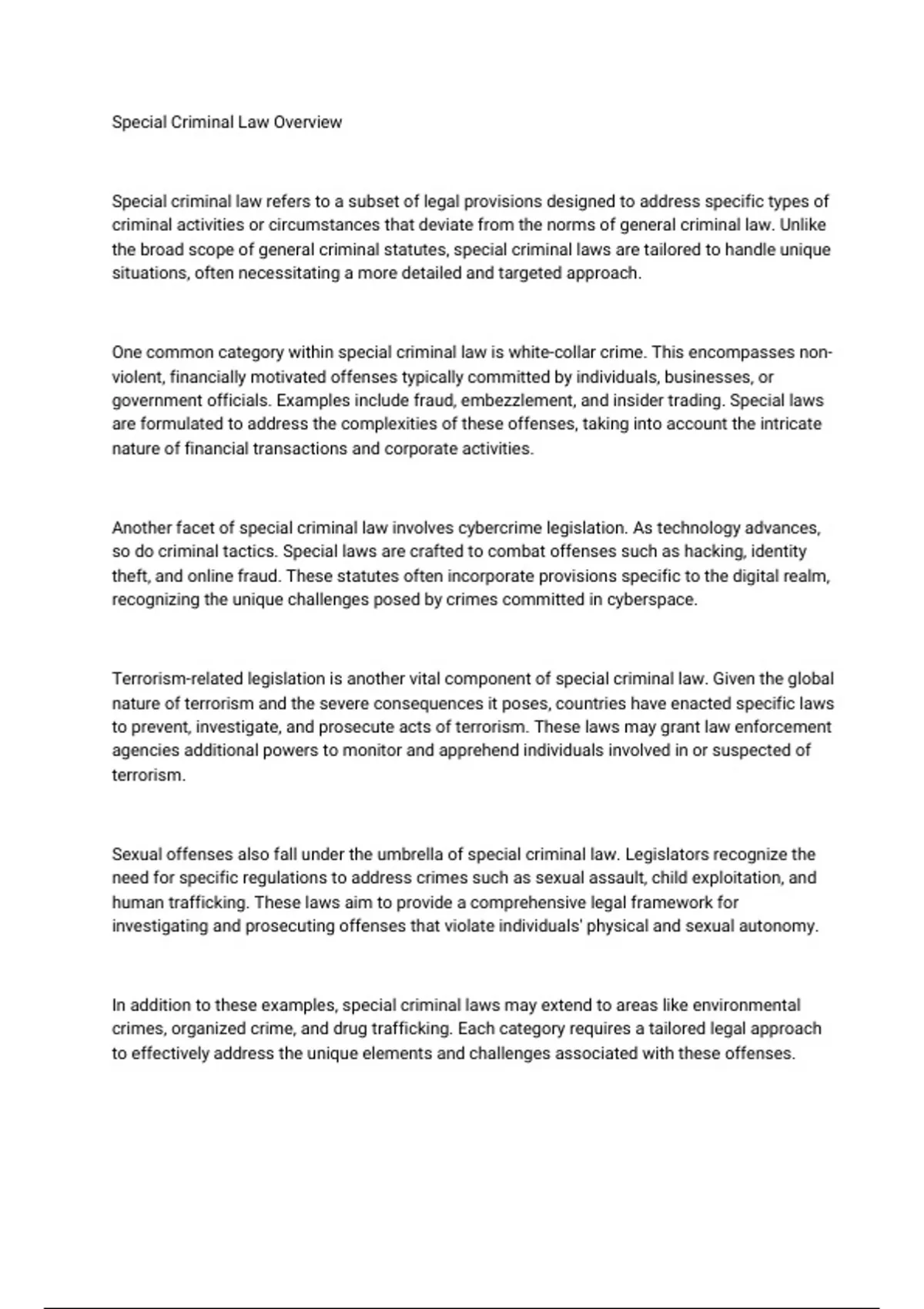Special Criminal Law Overview