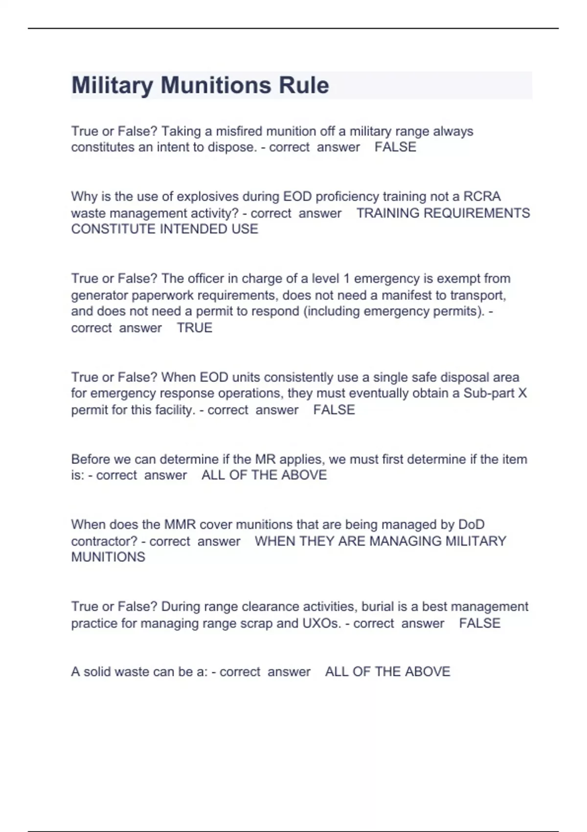 Military Munitions Rule a questions and answers rated A+ 2023