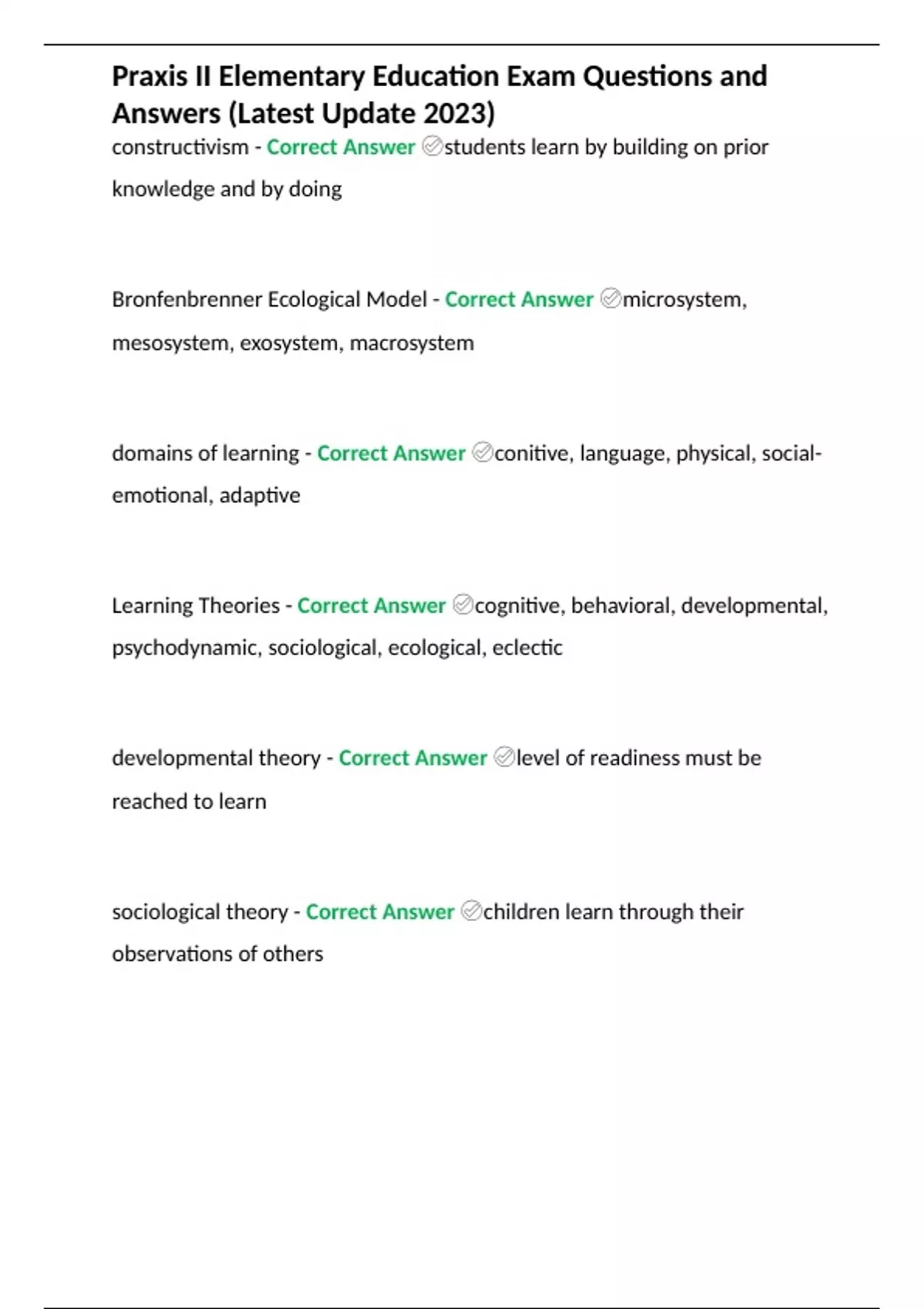 Praxis II Elementary Education Exam Questions and Answers (Latest Update 2023)