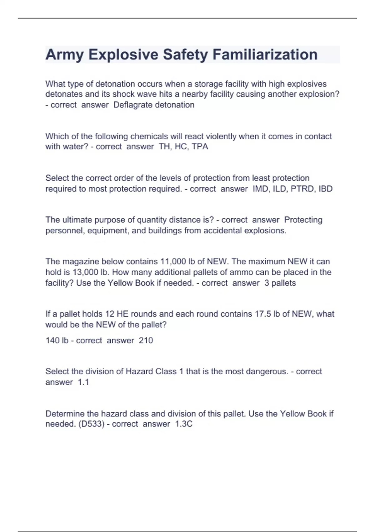 Army Explosive Safety Familiarization questions and answers verified 2023
