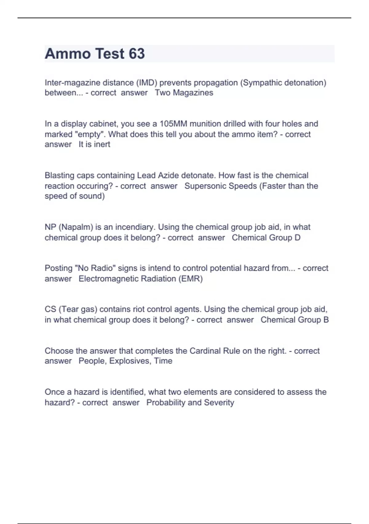 Ammo Test 63 questions and answers well elaborated 2023