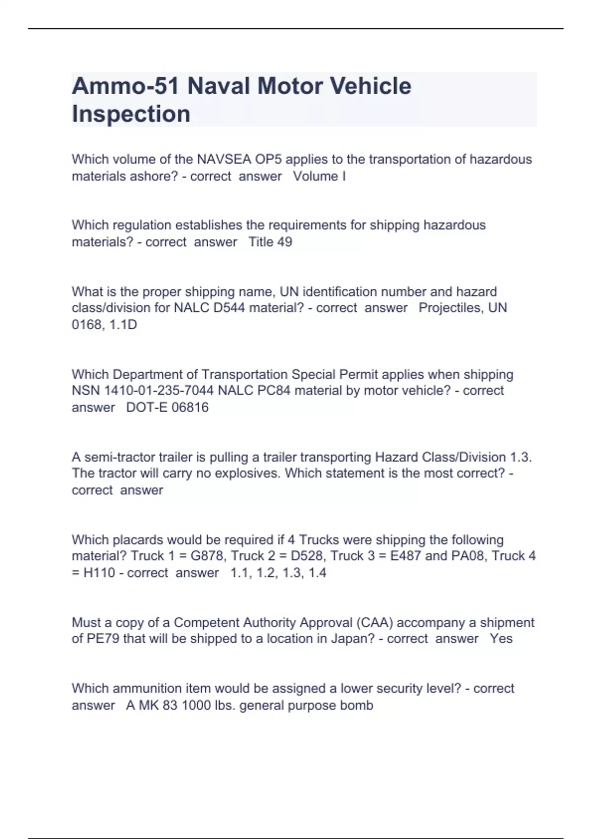 ammo d questions and answers rated a 2023