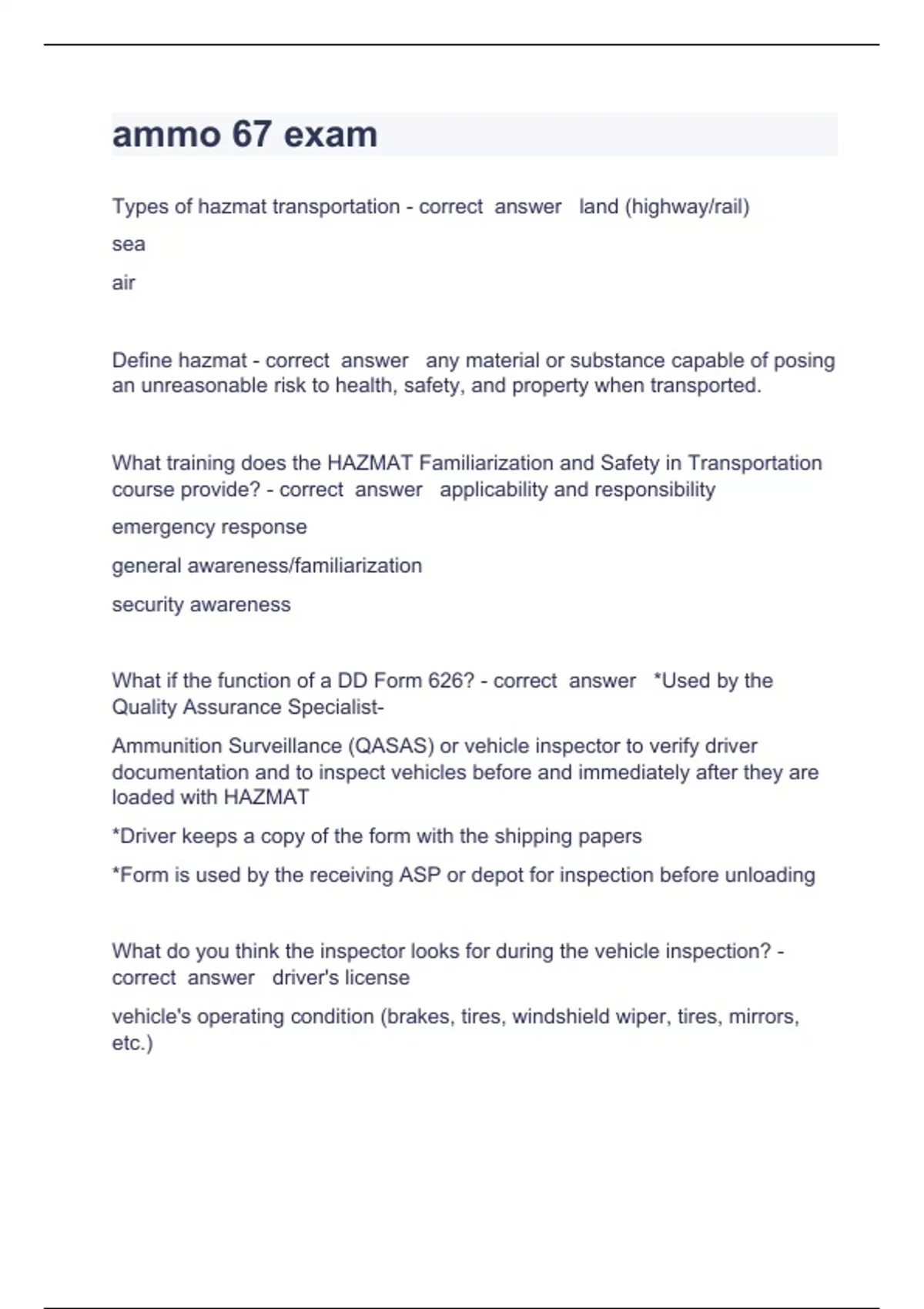 ammo 67 exam questions and answers well elaborated