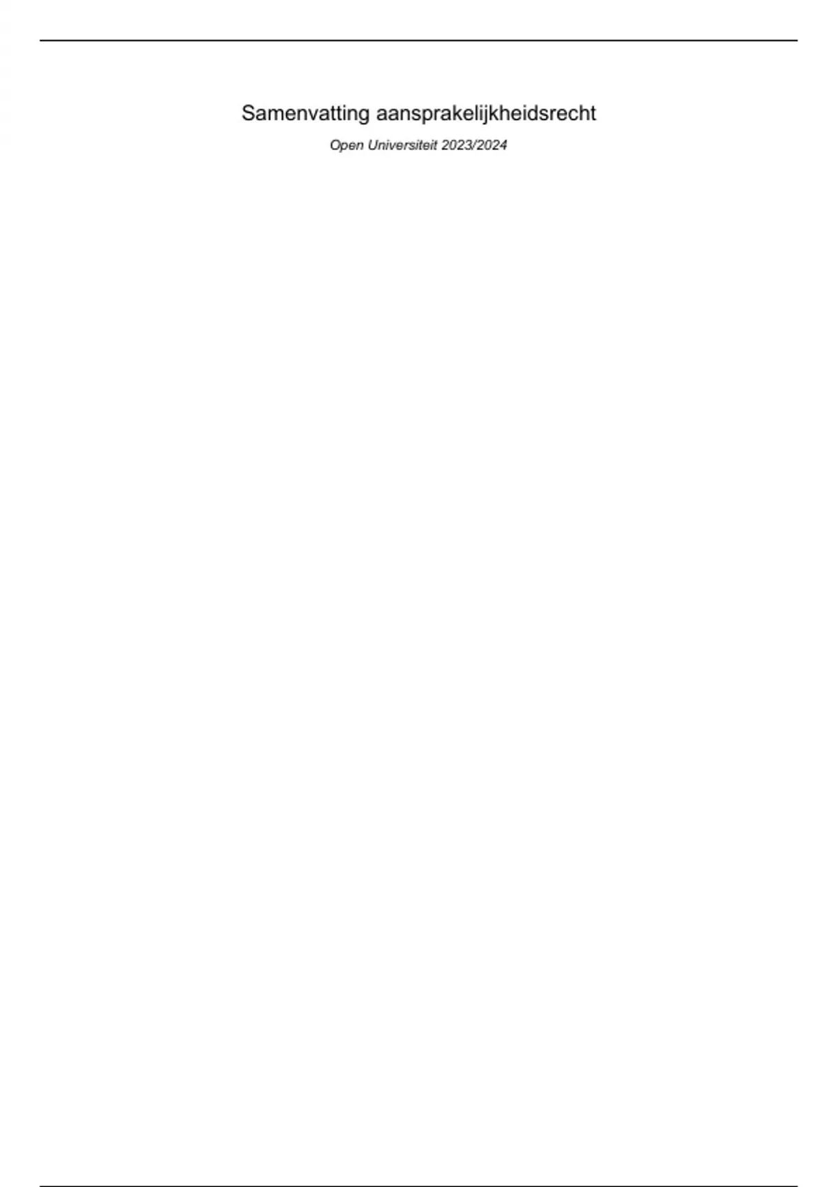 In dit document wordt de voorgeschreven literatuur voor het vak Aansprakelijkheidsrecht uitgebreid samengevat. De samenvatting bestaat uit 82 pagina's.