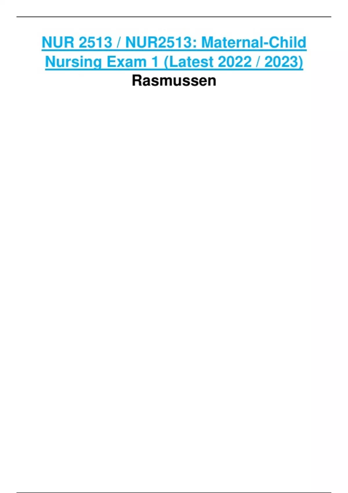 NUR 2513 / NUR2513: Maternal-Child Nursing Exam 1 (Latest Update 2023/ 2024) Rasmussen GRADED A+