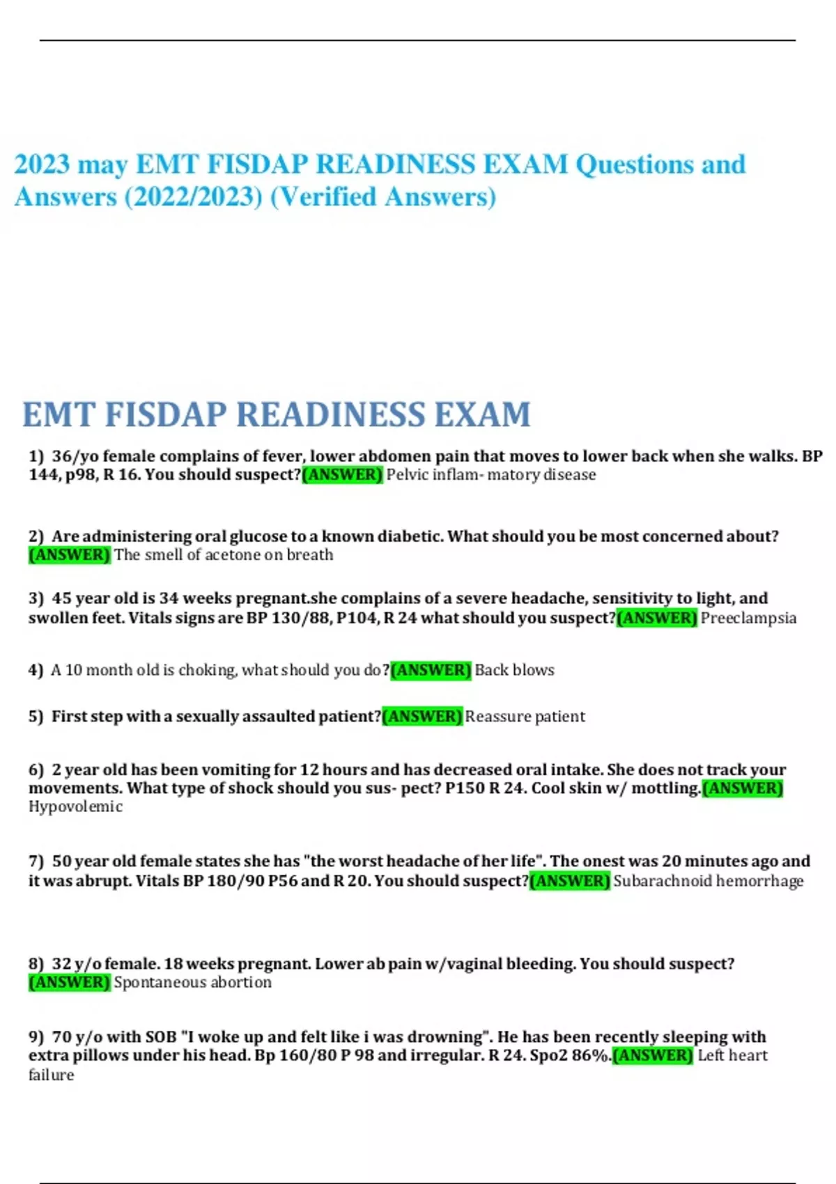 2023/2024 may EMT FISDAP READINESS EXAM Questions and Answers (2023/2024) (100% Verified Answers) GUARANTEED PASS!!