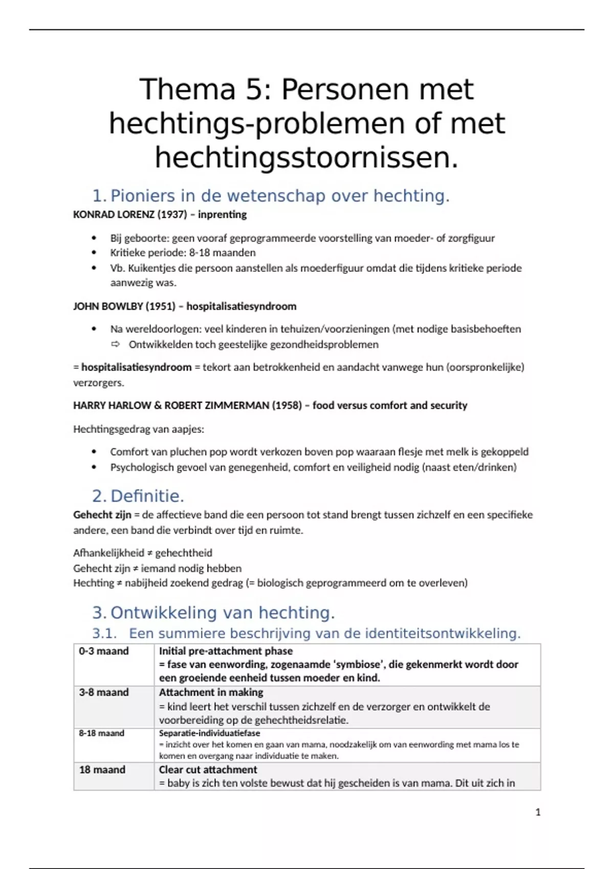 1. Pioniers in de wetenschap over hechting.