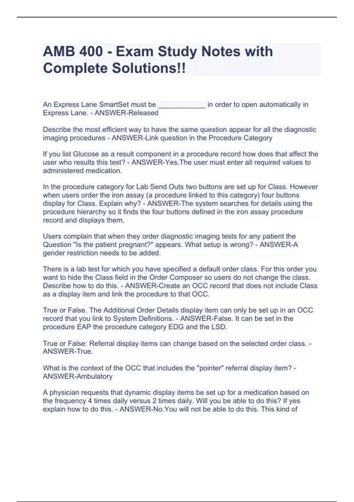 AMB 400 - Exam Study Notes with Complete Solutions!!
