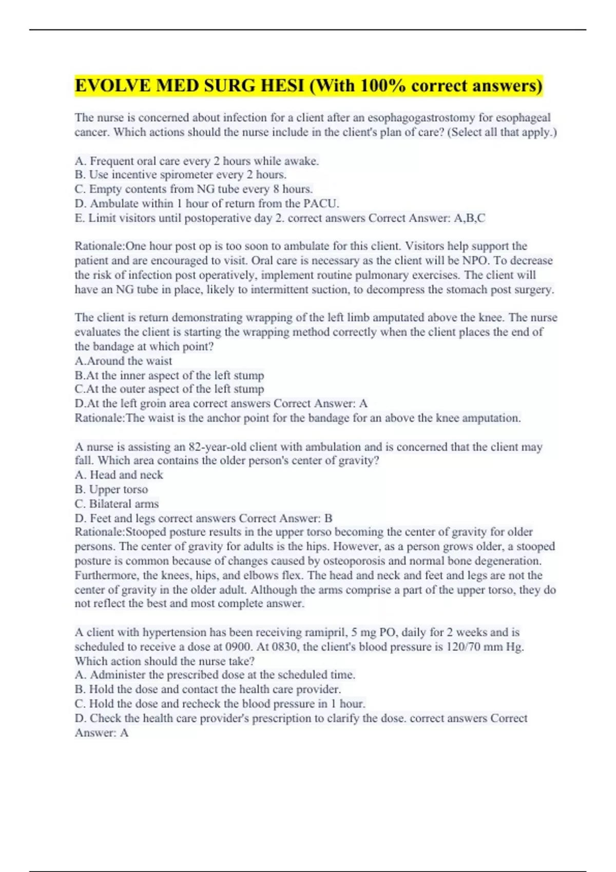 EVOLVE MED SURG HESI (With 100% correct answers)