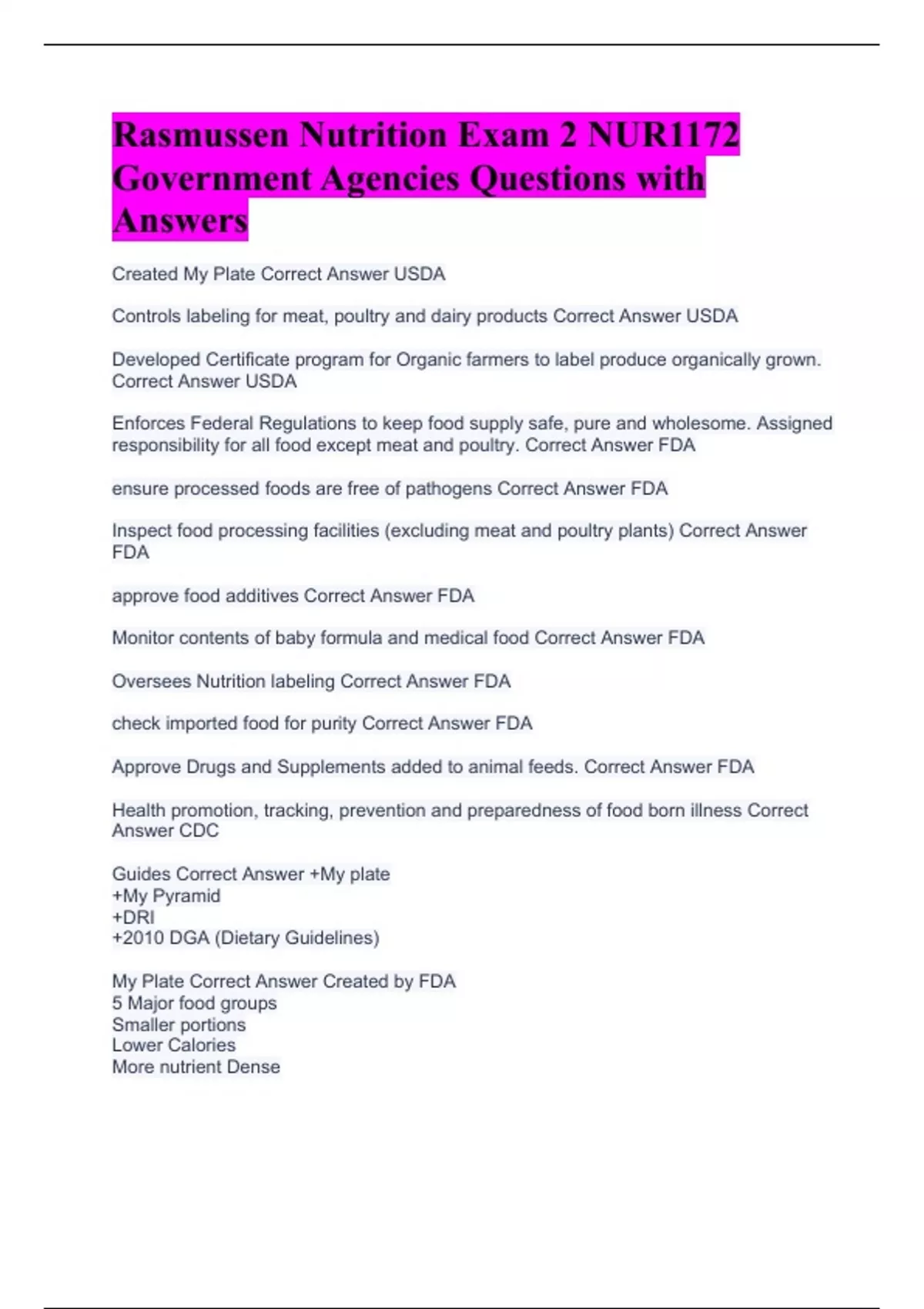 NUR1172 Nutritional Principles in Nursing- Chapter 3 Practice Test Questions with 100% Correct Answers