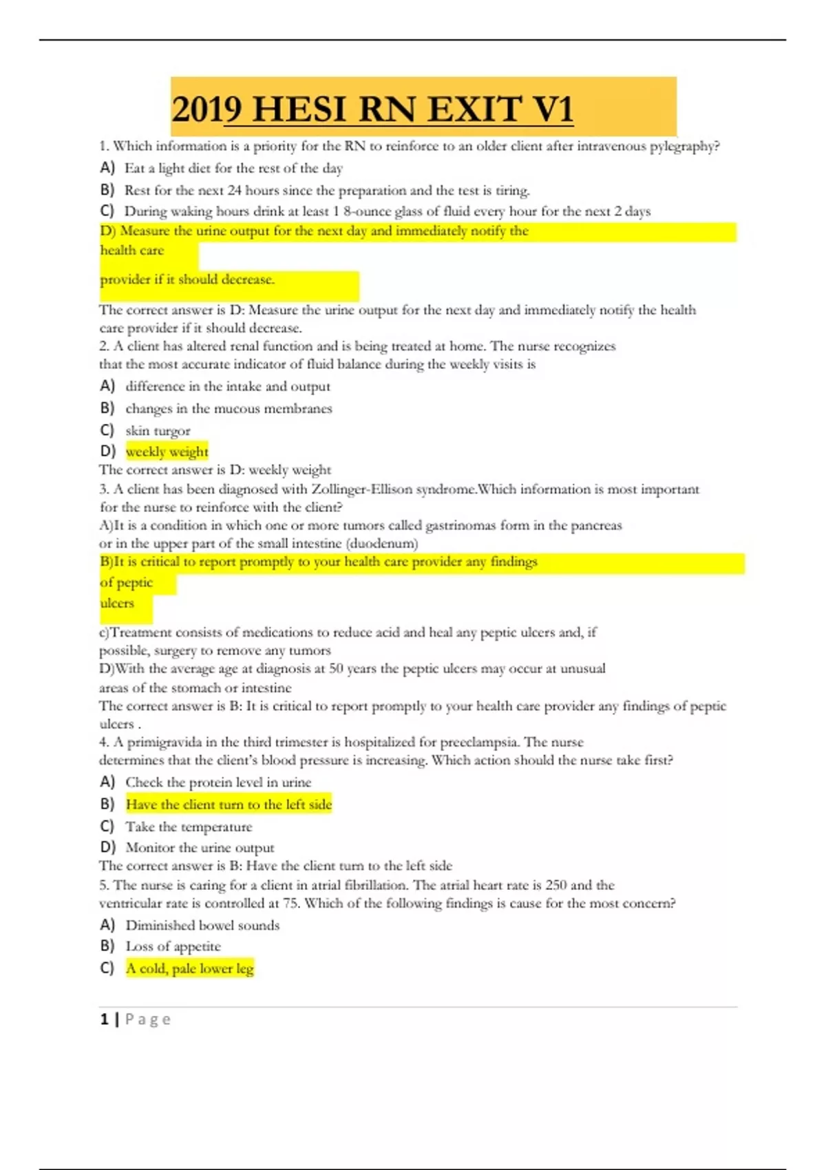 1. Which information is a priority for the RN to reinforce to an older client after intravenous pylegraphy?