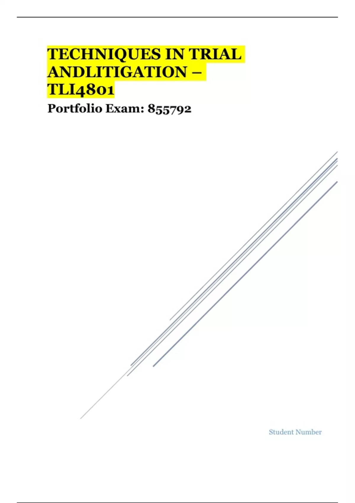 Declare that I am the author of this examination in TLI4801 I further declare that the