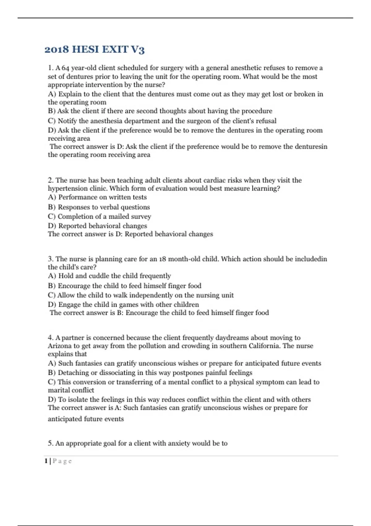 1. A 64 year-old client scheduled for surgery with a general anesthetic refuses to remove a