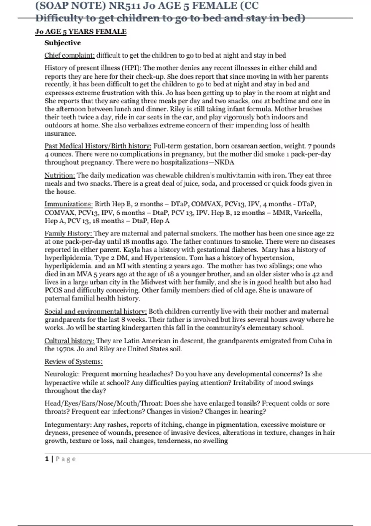 Chief complaint: difficult to get the children to go to bed at night and stay in bed