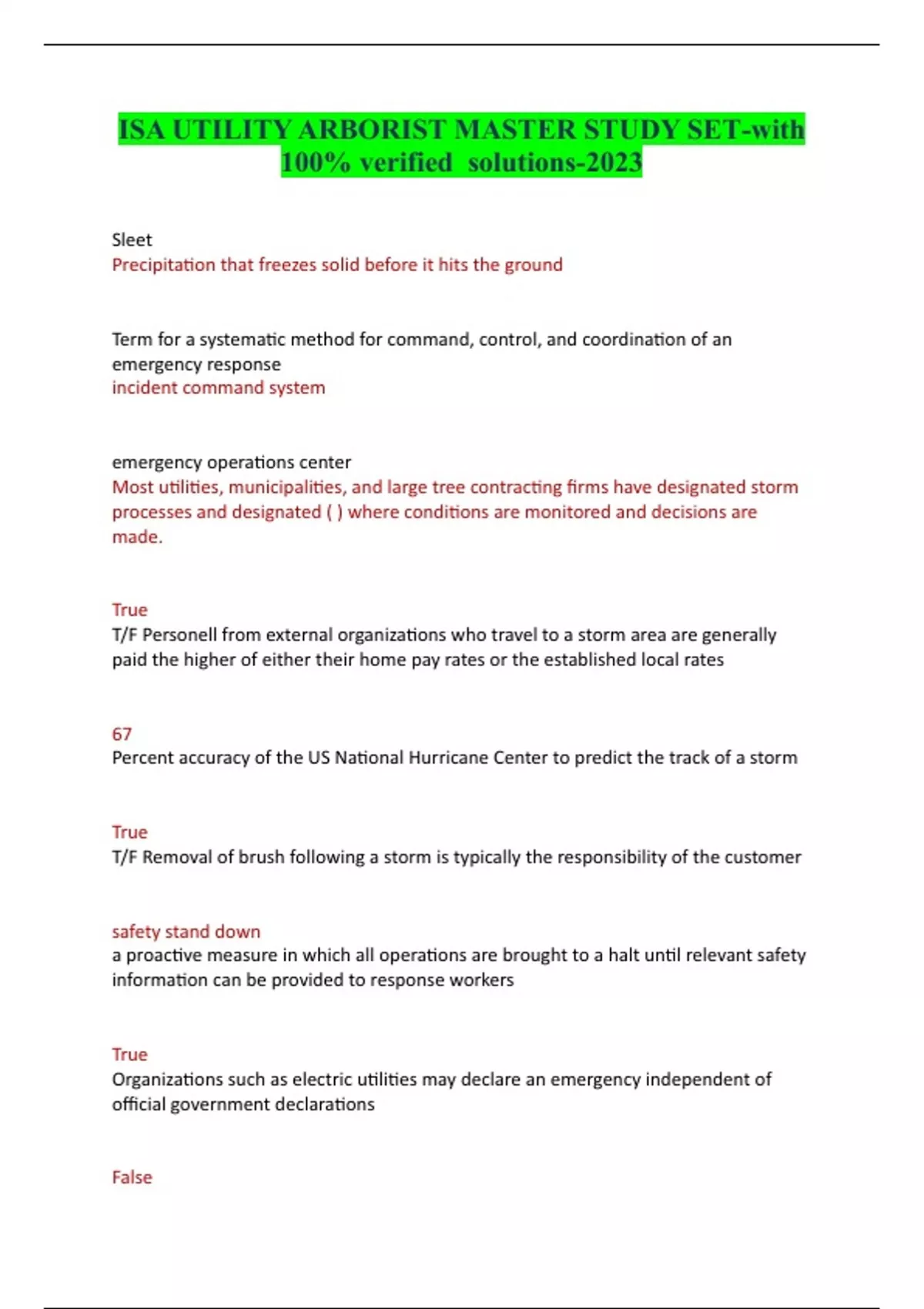 ISA UTILITY ARBORIST MASTER STUDY SET-with 100% verified solutions-2023