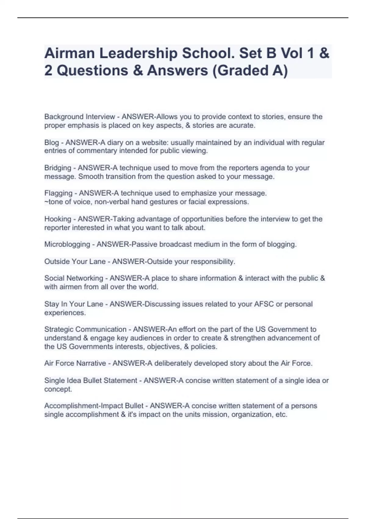 Airman Leadership School. Set B Vol 1 & 2 Questions & Answers (Graded A)