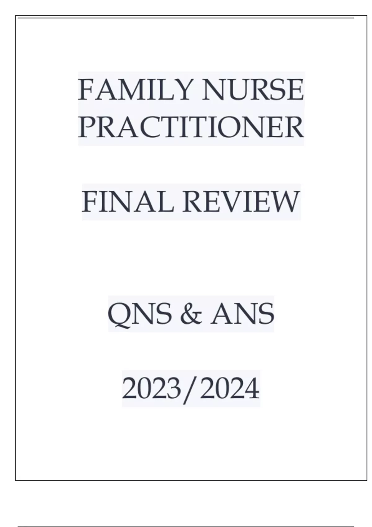 FAMILY NURSE PRACTITIONER FNP FINAL REVIEW QNS & ANS