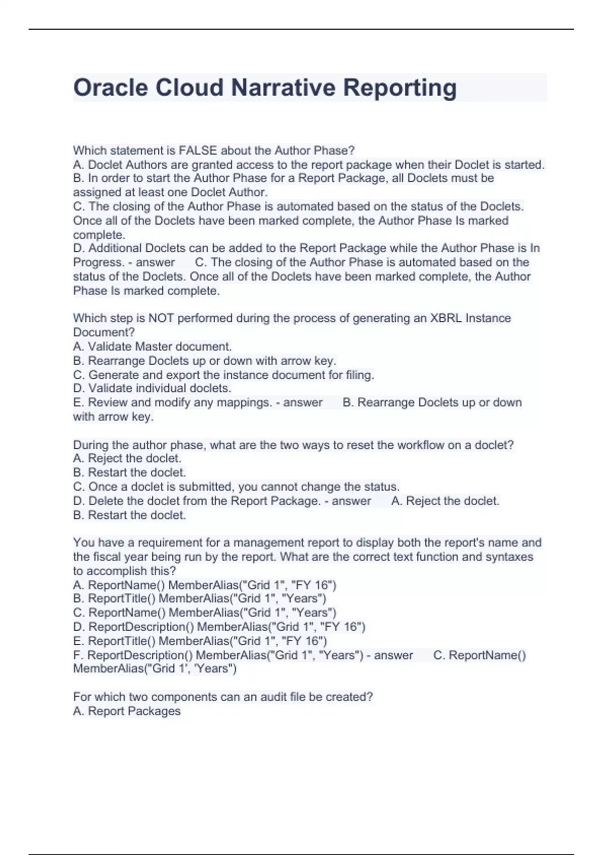 Oracle Cloud Narrative Reporting Questions and Answers 2023