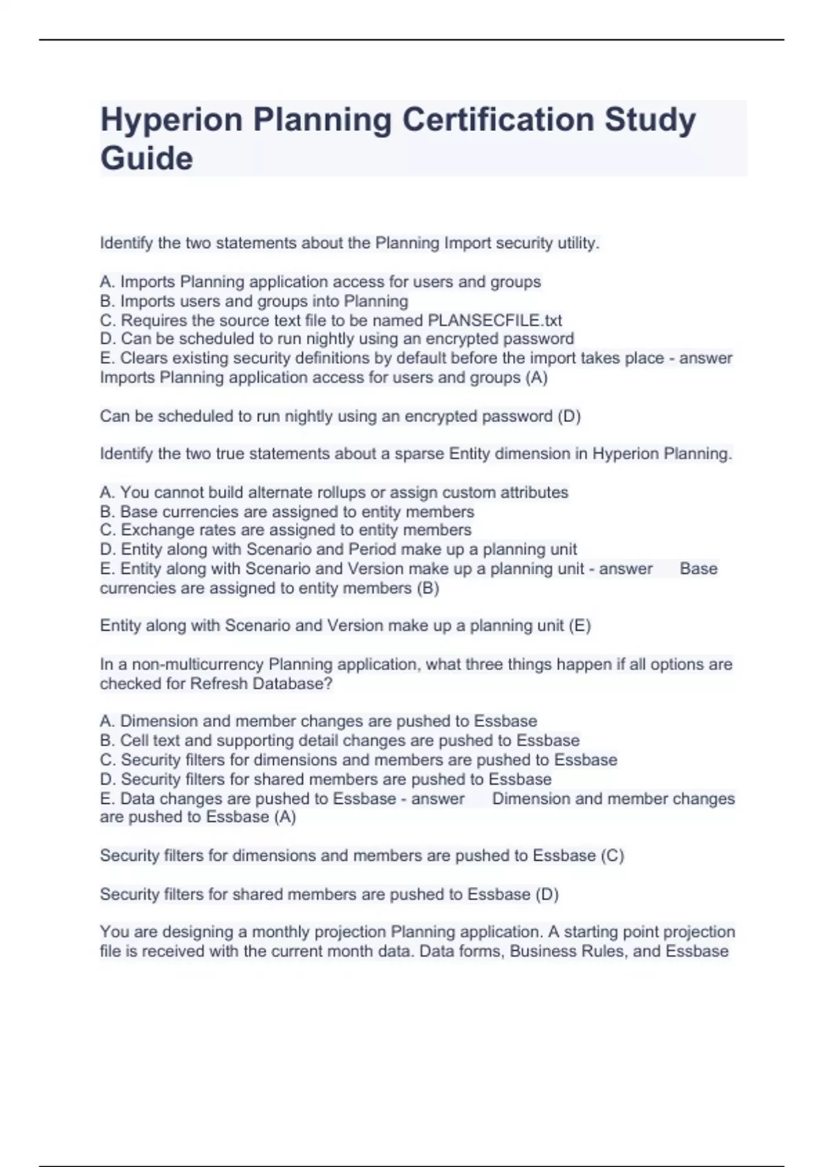 Hyperion Planning Certification Study Guide Questions and Answers Graded A+ 2023