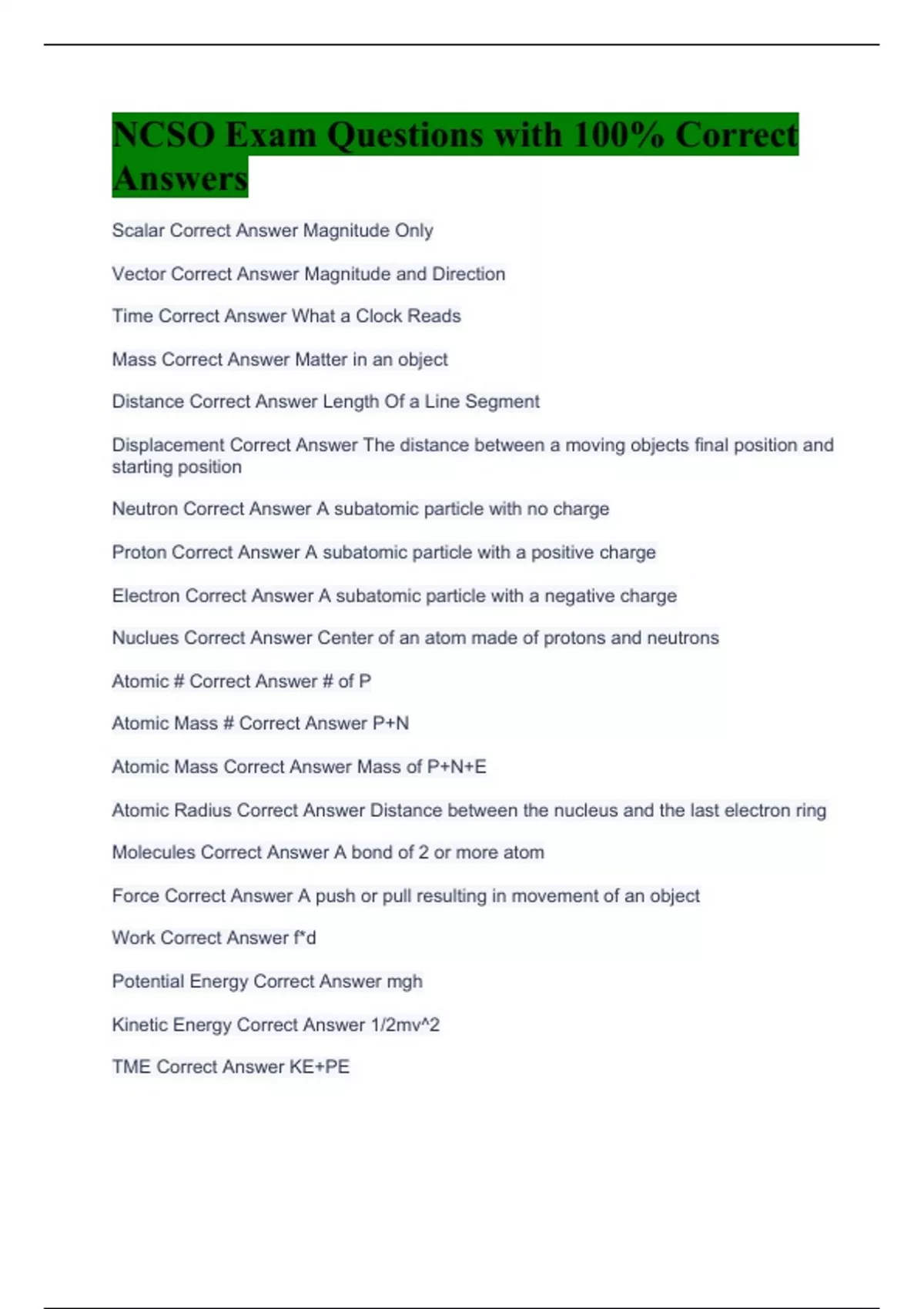 Scalar Correct Answer Magnitude Only Vector Correct Answer Magnitude and Direction Time Correct Answer What a Clock Reads Mass Correct Answer Matter in an object Distance Correct Answer Length Of a Line Segment Displacement Correct Answer The distance between a moving objects final position and starting position Neutron Correct Answer A subatomic particle with no charge Proton Correct Answer A subatomic particle with a positive charge Electron Correct Answer A subatomic particle with a negative charge Nuclues Correct Answer Center of an atom made of protons and neutrons Atomic # Correct Answer # of P Atomic Mass # Correct Answer P+N Atomic Mass Correct Answer Mass of P+N+E