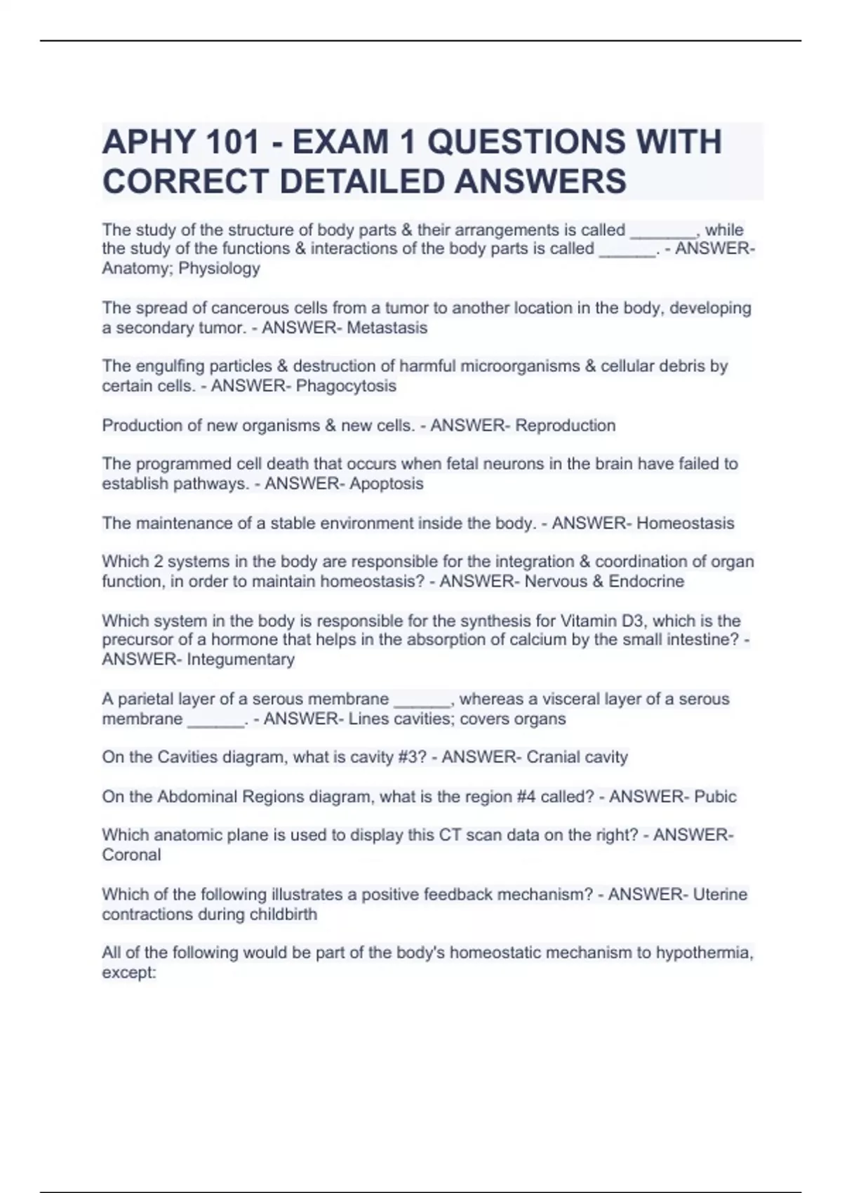 PAKAGEE DEAL FOR APHY 101 FINAL EXAM REVIEW CHAPTERS 1-5 QUESTIONS WITH CORRECT DETAILED ANSWERS ALL VERSIONS