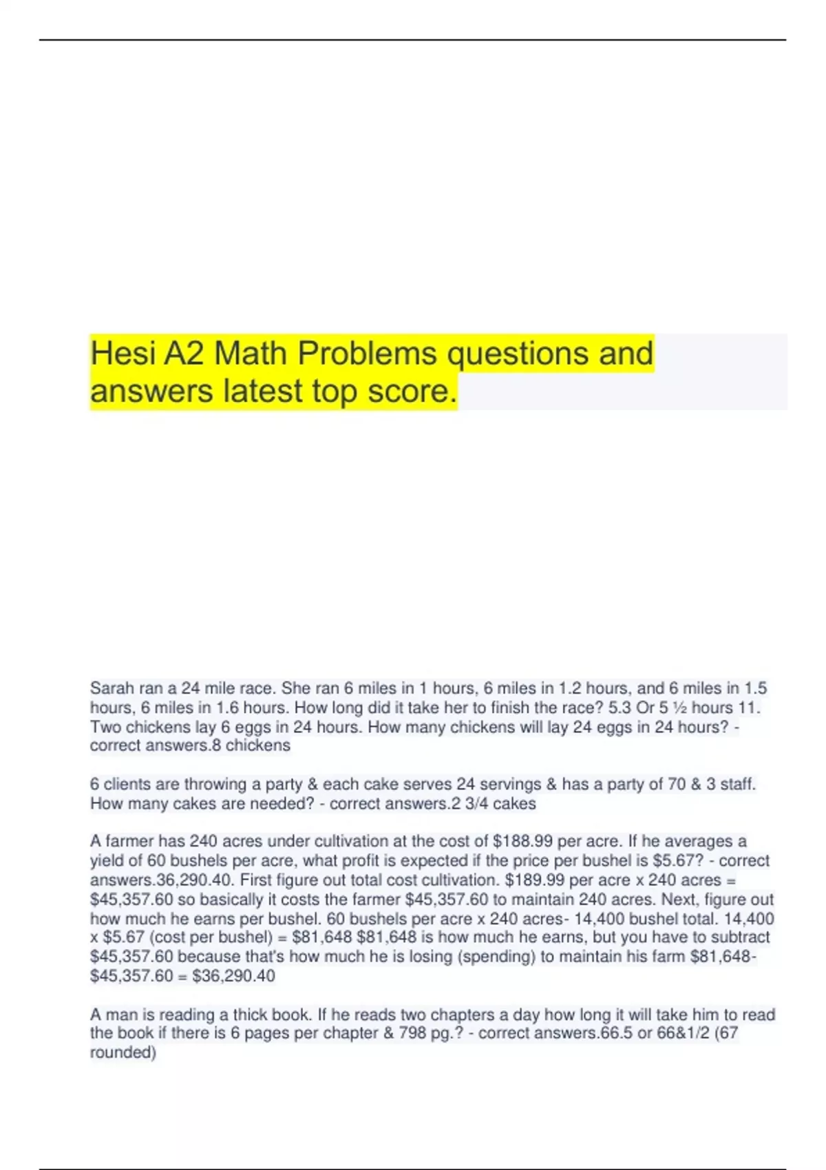 Hesi A2 Math Problems questions and answers latest top score.