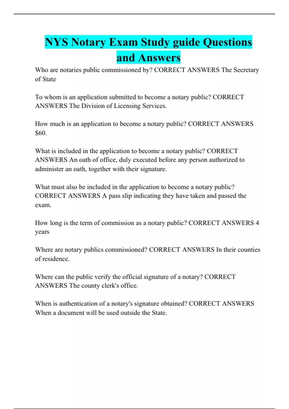 NYS Notary Exam Study guide Questions and Answers