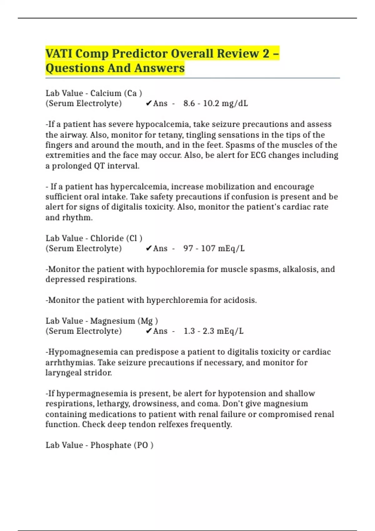 VATI Comp Predictor Overall Review 2 – Questions And Answers