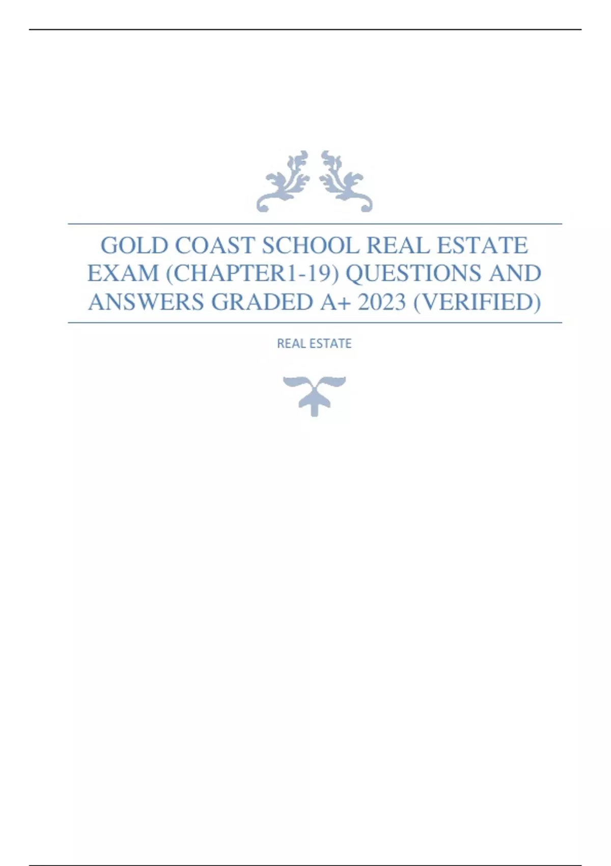 GOLD COAST SCHOOL REAL ESTATE EXAM (CHAPTER1-19) QUESTIONS AND ANSWERS GRADED A+ 2023 (VERIFIED)