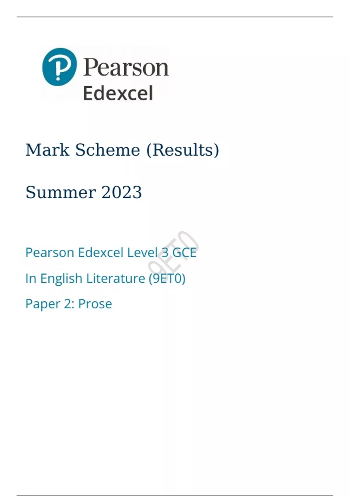 Pearson Edexcel GCE English Literature Advanced paper 2(9ET0/02) mark scheme for June 2023 Prose