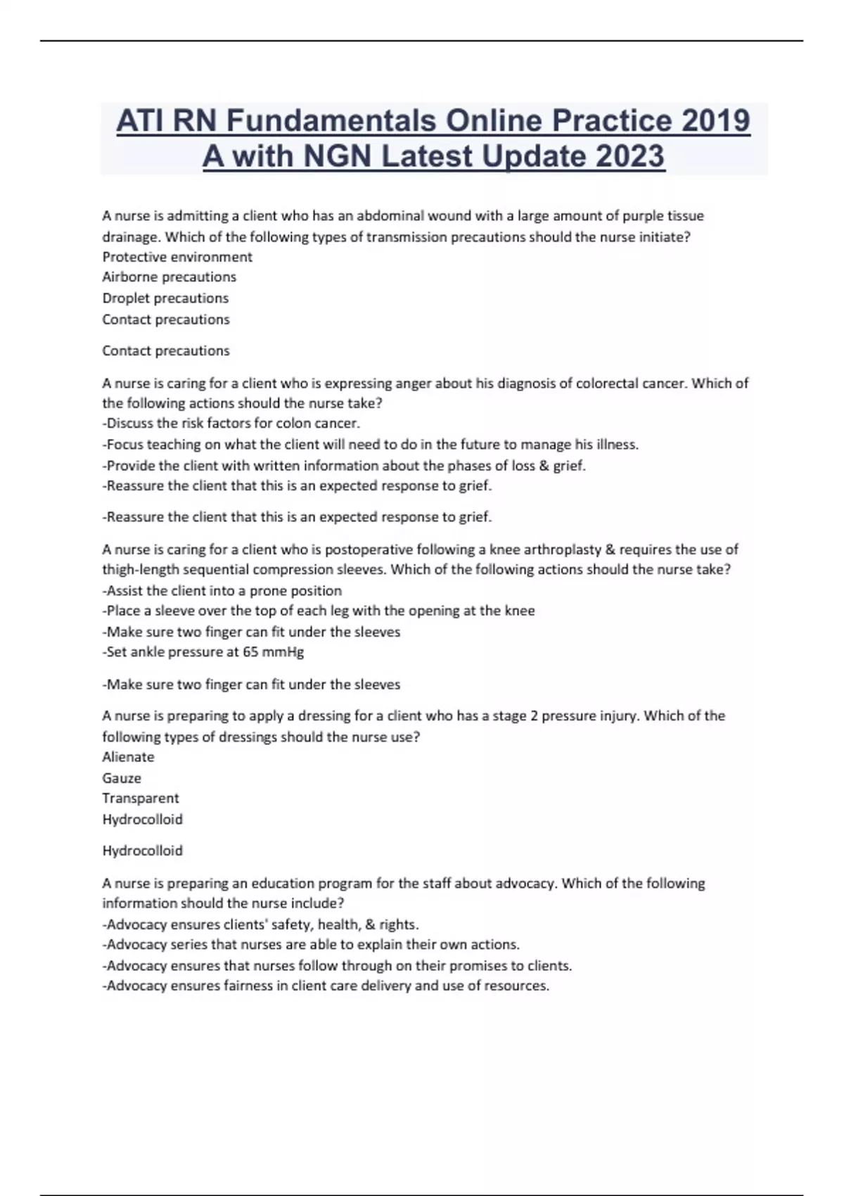 ATI RN Fundamentals Online Practice 2019 A with NGN Latest Update 2023