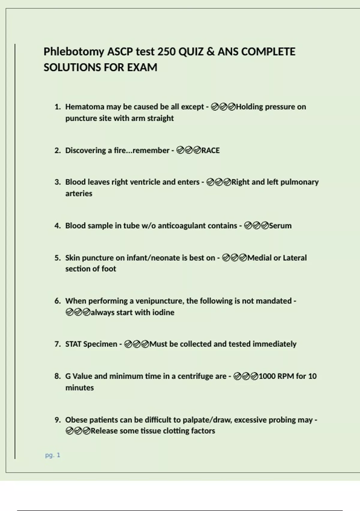 phlebotomy ascp test 250 quiz ans complete solut