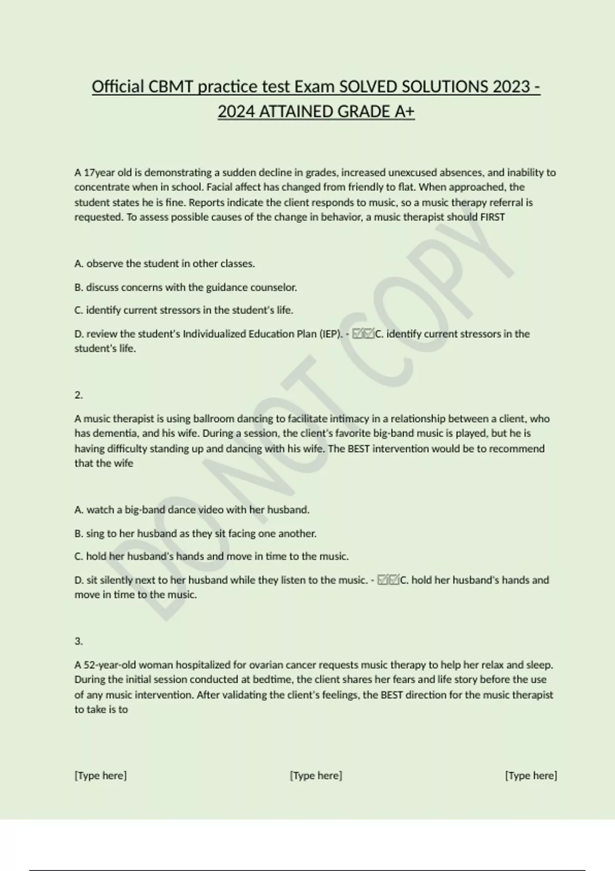 Official CBMT practice test Exam SOLVED SOLUTIONS ATTAINED GRADE A+.