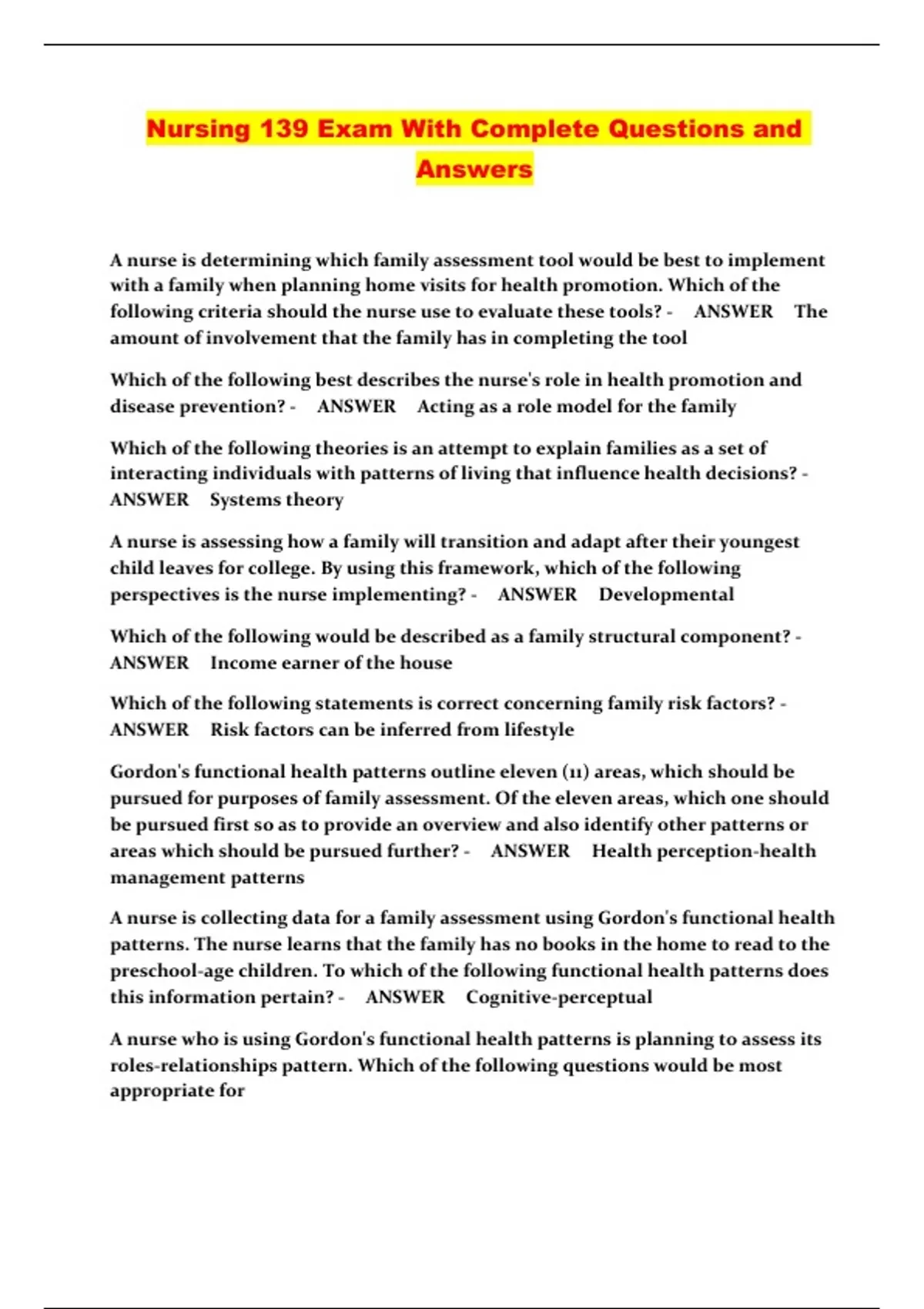 nursing 139 exam with complete questions and answe