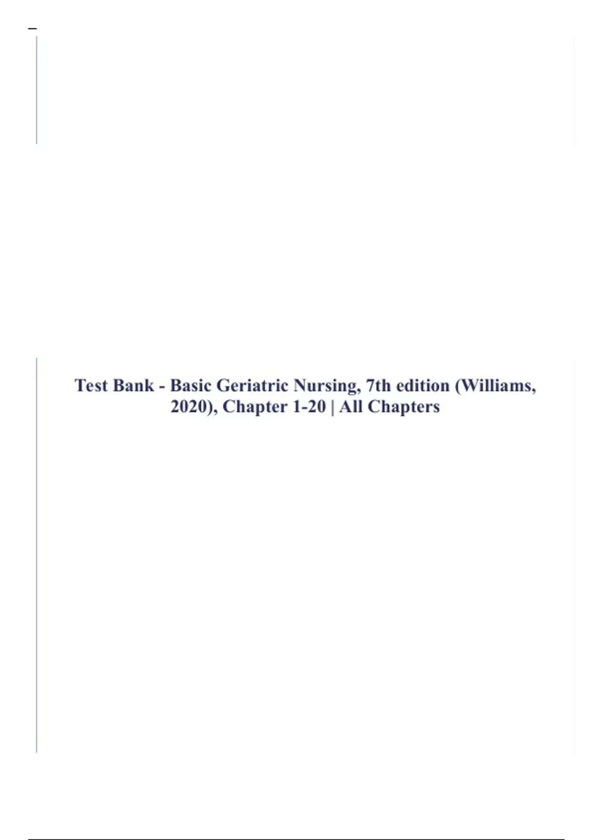Test Bank: Basic Geriatric Nursing, 7th Edition by Patricia A. Williams