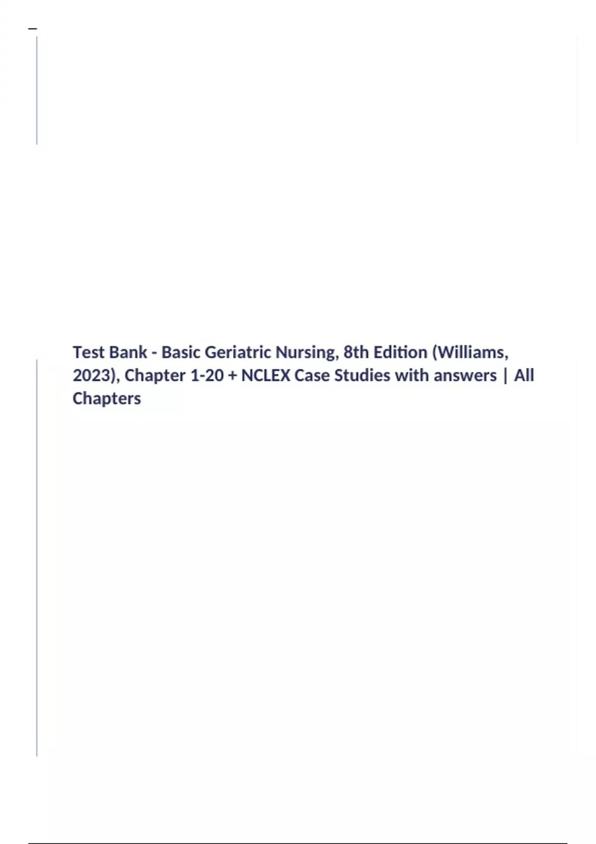 ,TEST BANK: Basic Geriatric Nursing, 8th Edition by Patricia
