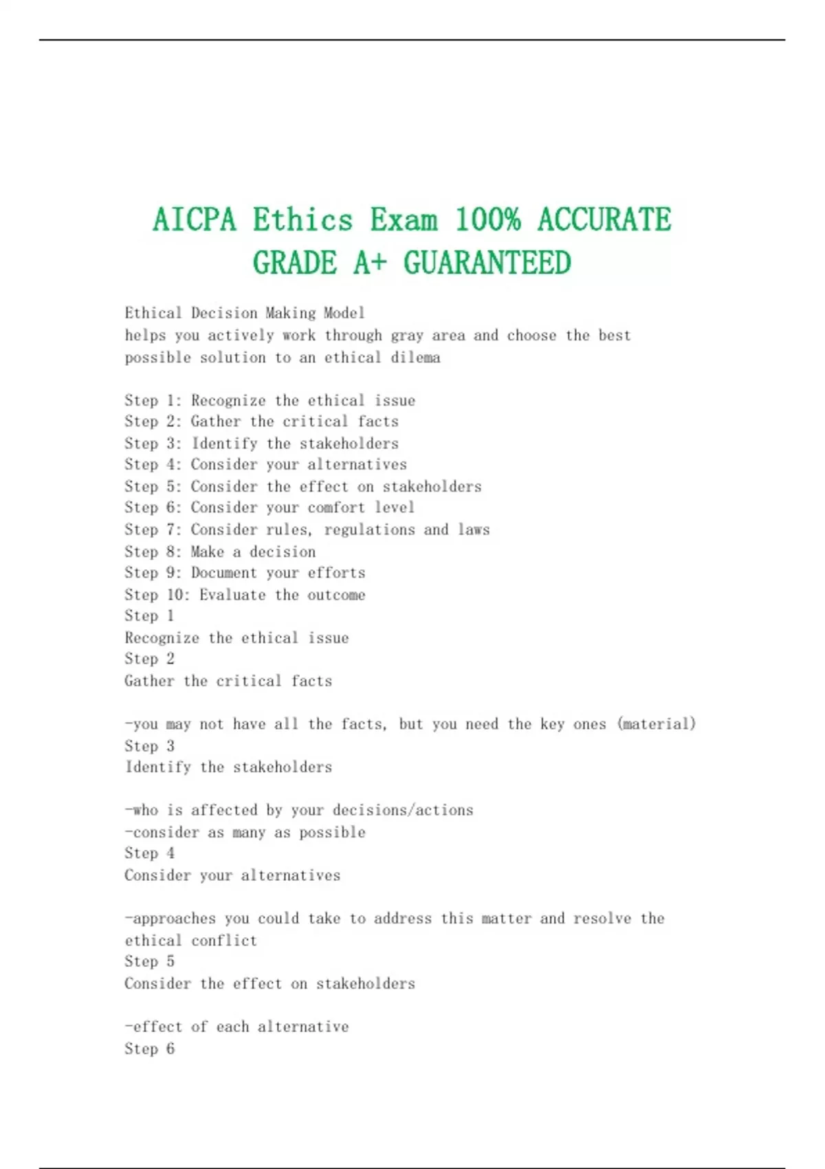 AICPA Ethics Exam 100% ACCURATE GRADE A+ GUARANTEED