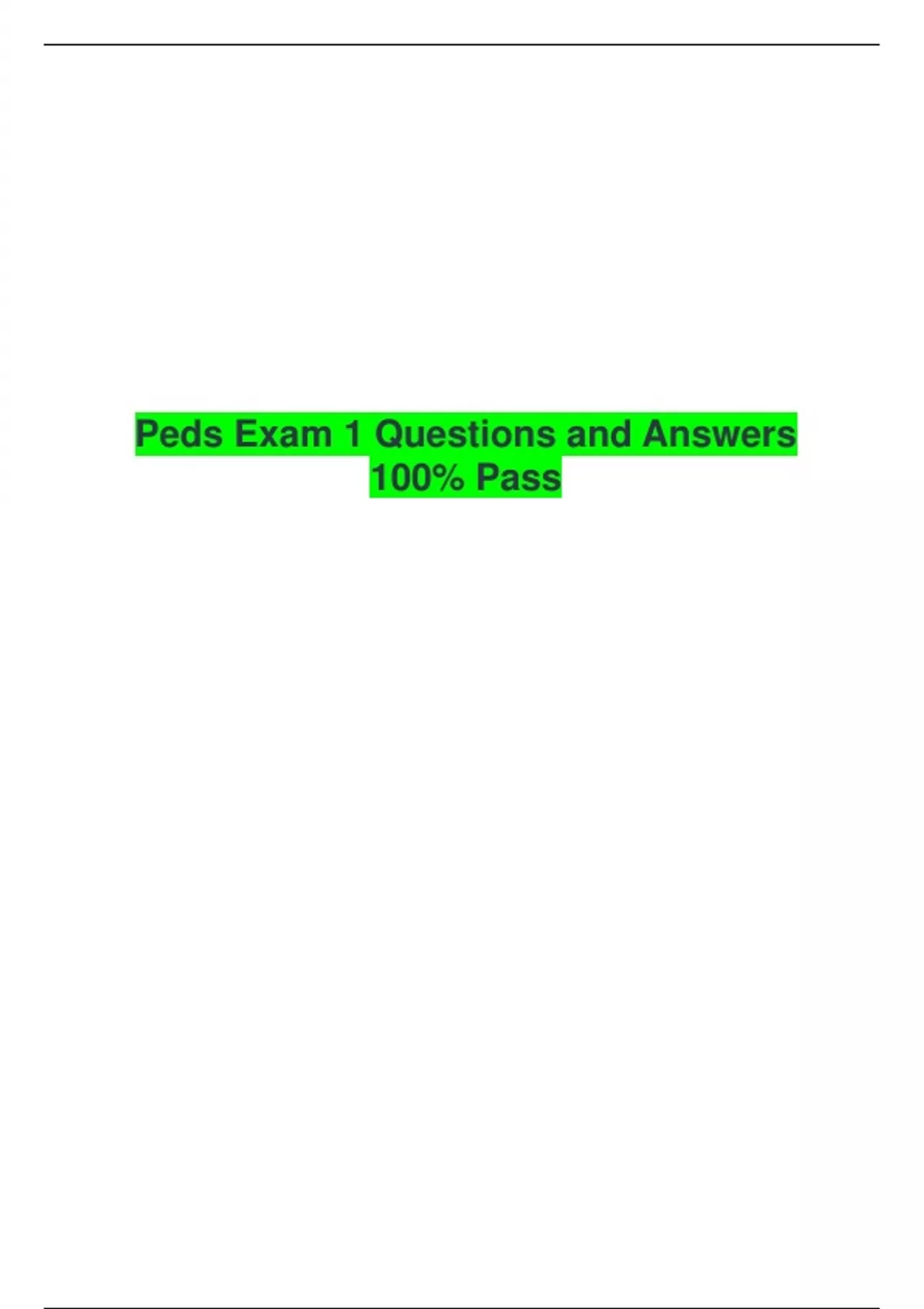 peds exam 1 questions and answers 100 pass guaran